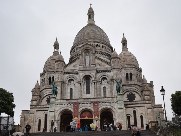 Am Nachmittag besuchten wir die wunderschöne Basilika Sacre-Coeur, mit ihren vielen Verzierungen, die in strahlendem Weiß ganz oben auf dem Montmartre liegt. Von hier hat man eine tolle Aussicht über Paris. Vor ihr befindet sich der Place du Tertre, wo man bei schönem Wetter viele Straßenkünstler und -händler finden kann. Die Auswahl an Souvenirs ist umwerfend!