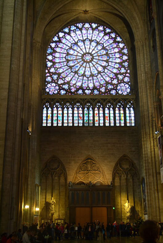 Danach fuhren wir mit der Metro in die Stadt zur Notre-Dame du Paris, eine der bedeutendsten Kathedralen Europas. Wir waren sehr beeindruckt von dem riesigen Innenraum und den schönen Mosaiken in den Fenstern. Diese ließen das Innere der Kathedrale in ein farbiges Licht erleuchten. Irgendwie kamen wir uns ganz winzig vor...