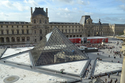 Der nächste Morgen war für das größte Museum der Welt reserviert: Den Louvre- mit seiner Pyramide aus Glas. Das Museum besitzt Meisterwerke aller Epochen und Kontinente, die auf 60.000 m_ ausgestellt sind. Unsere Museums-Rallye sorgte dafür, dass wir ganz bestimmte Kunstwerke suchten, die die meisten von uns tatsächlich auch aufspüren konnten. Unsere wichtigsten Ziele waren z.B. die Venus von Milo, Nike von Samothrake und der "Star" des Louvre: die Mona Lisa (La Joconde) von Leonardo da Vinci. Auch wenn wir sie uns etwas größer vorgestellt hatten, war sie für uns ein "Muss".