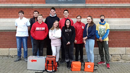 Damit unsere Schulsanitäter ihre Aufgaben selbstsicher wahrnehmen können erhalten sie im Rahmen der AG Schulsanitäter und in Zusammenarbeit mit dem DRK Oelsnitz eine Ausbildung zum Ersthelfer. Darüber haben unsere Schulsanitäter über ein Praktikum oder eine ehrenamtliche Tätigkeit in der Sanitätsbereitschaft beim DRK-Kreisverband Oelsnitz die Möglichkeit tieferer Einblicke in verschiedene medizinische Berufe.